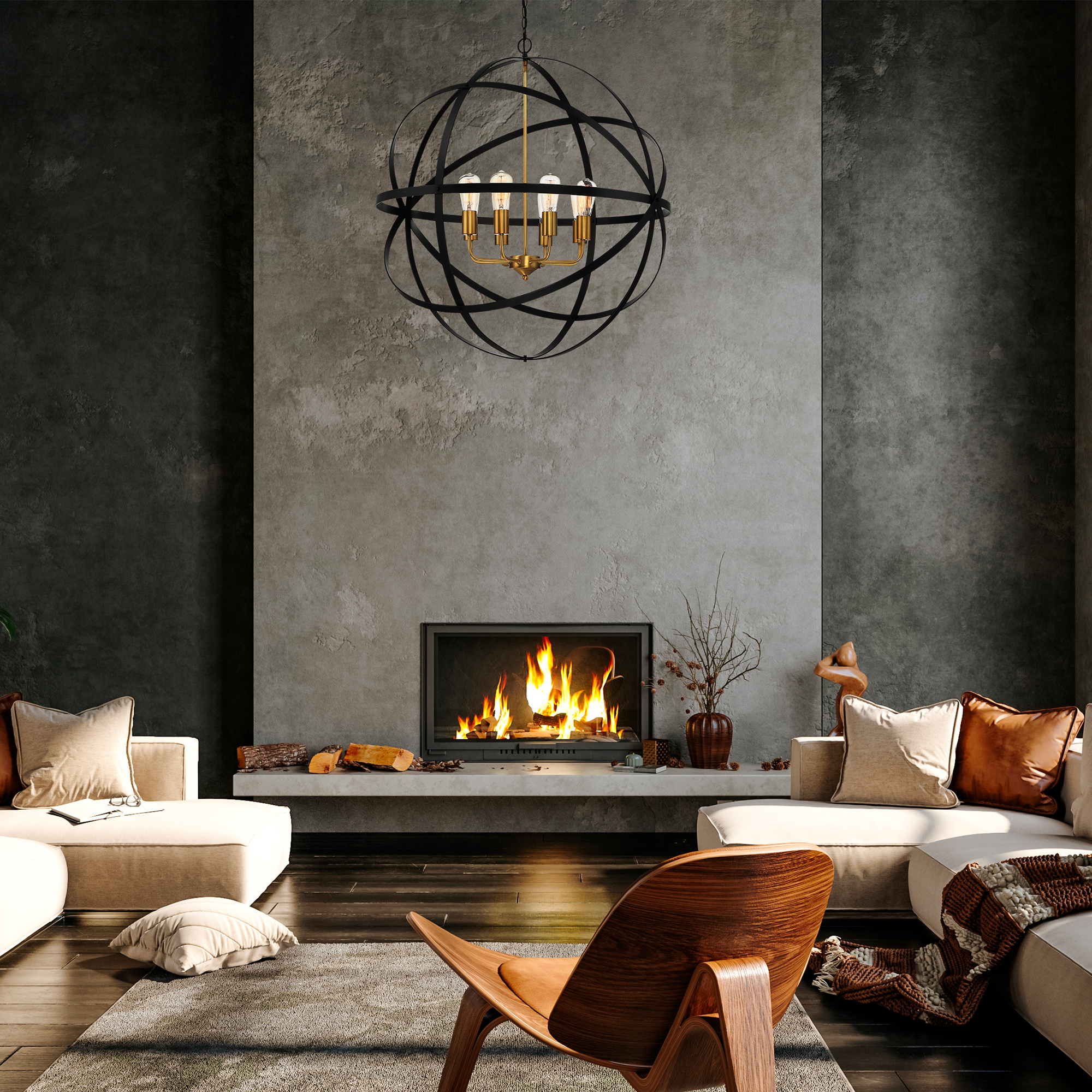 The Apollo pendant blends refined elegance with industrial charm, featuring strap iron spheres encasing Nickel or Antique Gold candelabras. Available in three sizes, each piece creates a striking focal point with its sculptural form. Ideal for dining rooms, living areas, stairwells, or voids, it adds warmth and sophisticated drama.