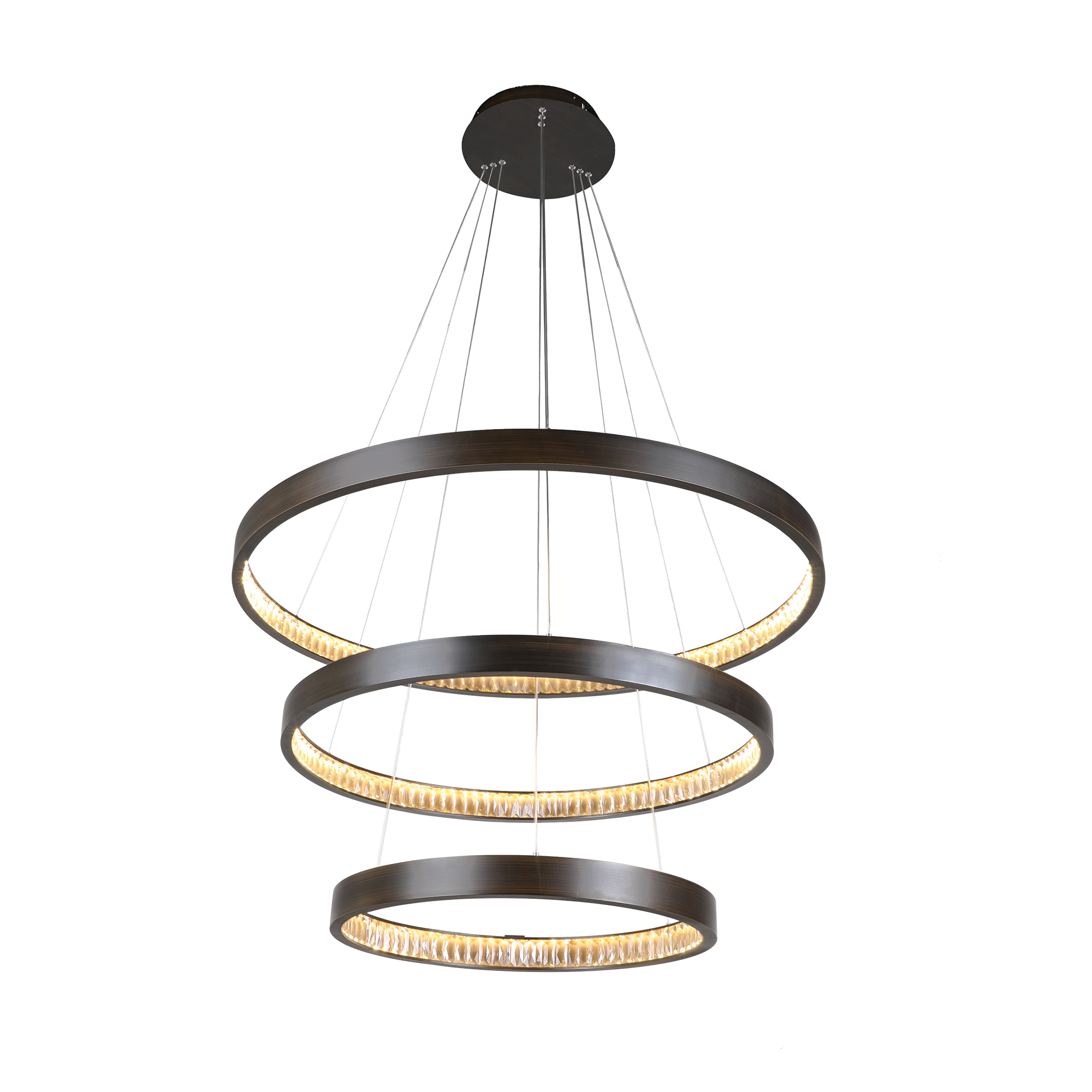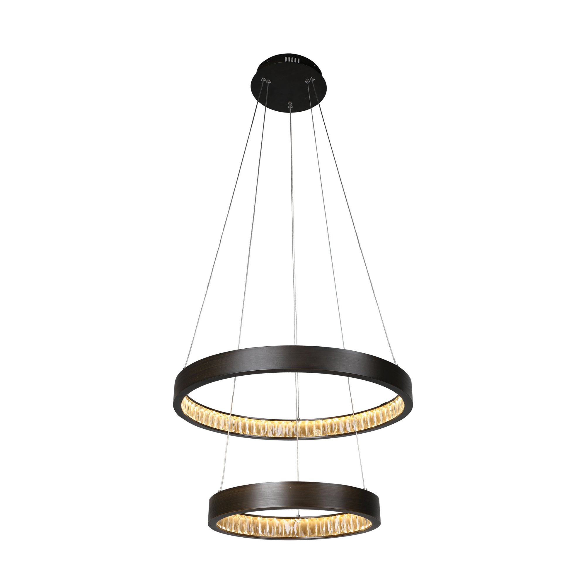 The Margo collection embodies effortless elegance through exquisite details. Unique granite-finish rings encase lustrous beveled cut crystals, reflecting light beautifully in multiple directions. This luxurious, designer fixture adds exceptional sparkle and sophistication—perfect for dining tables or entry foyers—bringing a chic, original statement to any refined interior.